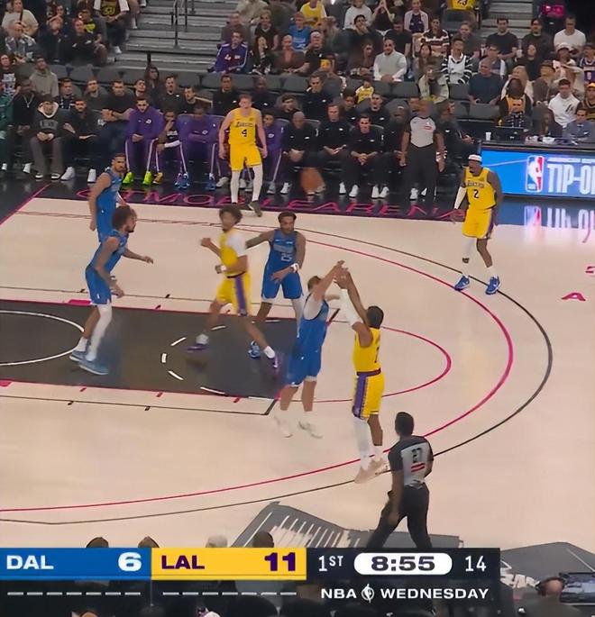 湖人官方写道,文森特刚刚连续命中了五个叁分球。