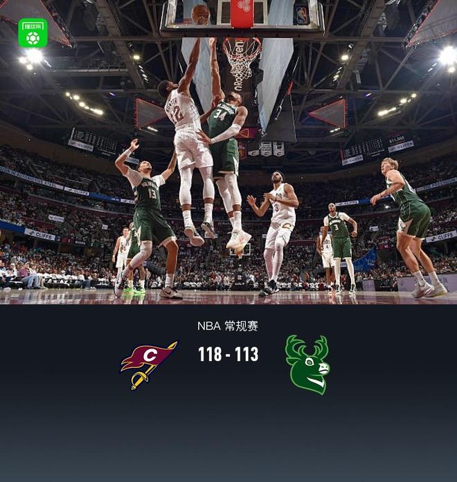 第四节骑士米切尔拿下10分,雄鹿字母哥拿下11分,最终骑士116-112战胜雄鹿